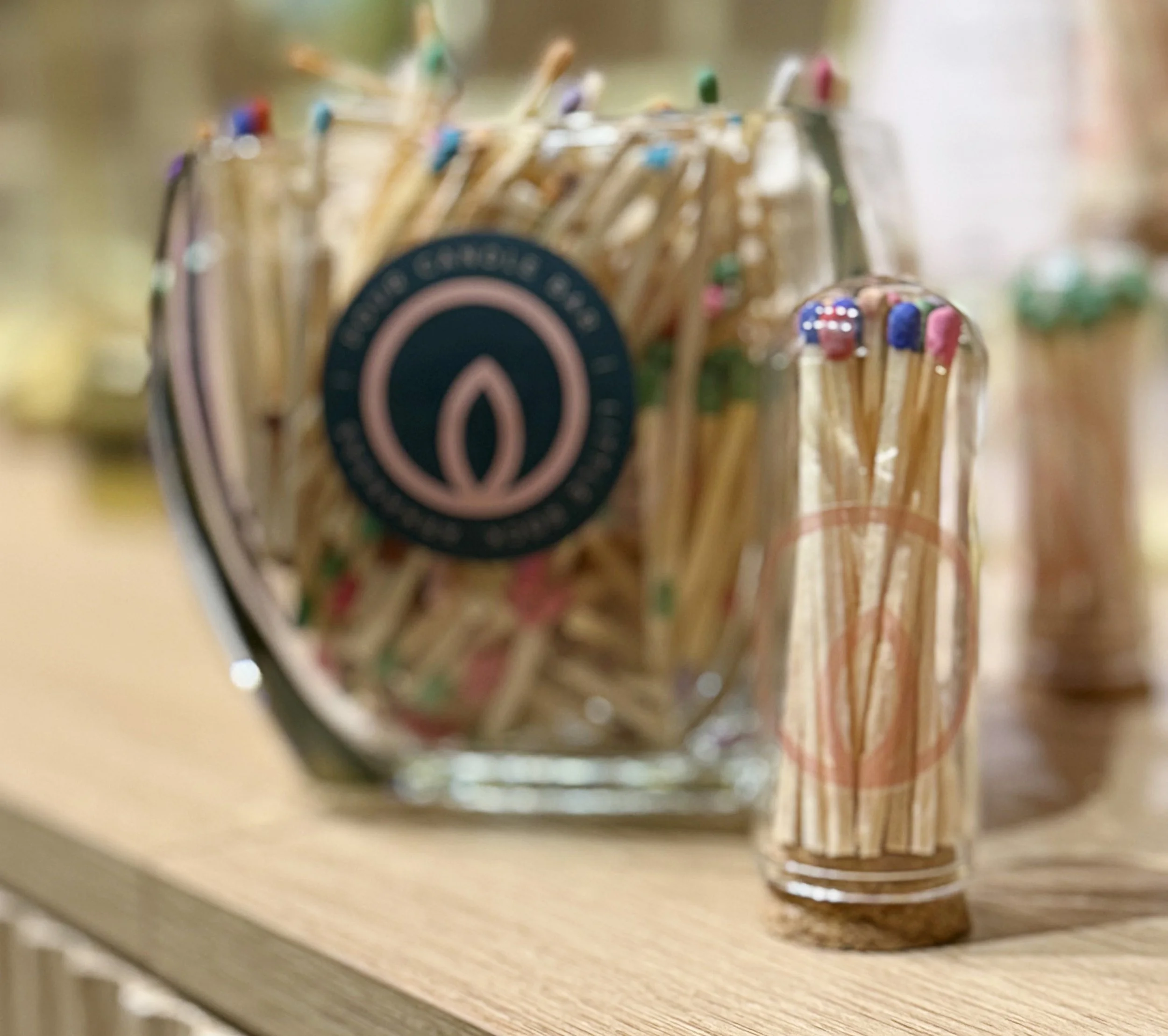 Stay lit with a POUR match bar! For an additional $14.99, you can take home a glass cloche with cork stopper for your matches. Select this add on when you purchase your ticket.